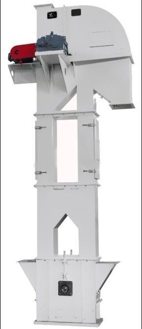 斗式提升机用来垂直提升经过破碎机的石灰石、煤、石膏、熟料、干粘土等块粒状物料以及生料、水泥、煤粉等粉状物料。