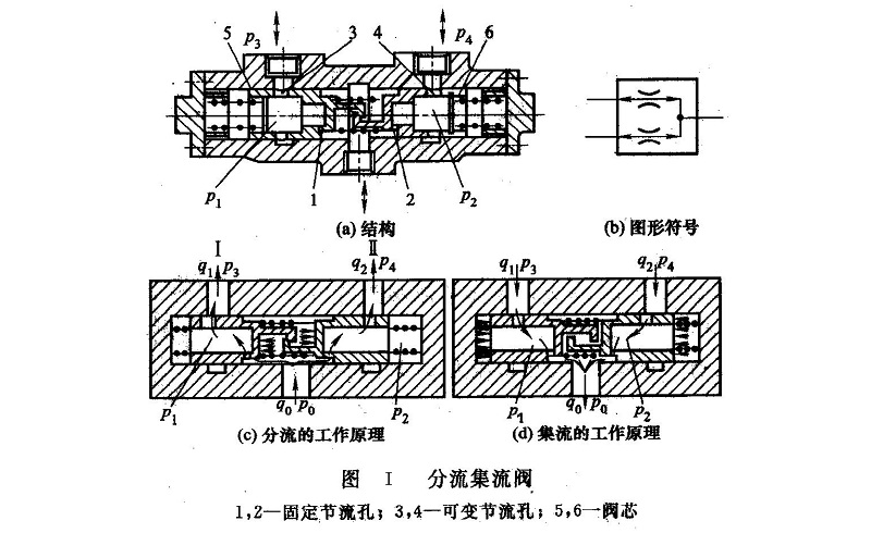分流集流閥包括分流閥、集流閥和分流集流閥三種不同控制類型。分流閥安裝在執(zhí)行元件的進口,保證進入執(zhí)行元件的流量相等;集流閥安裝在執(zhí)行元件的回油路,保證執(zhí)行元件回油量相同。分流閥和集流閥只能保證執(zhí)行元件單方向的運動同步,若要求執(zhí)行元件雙向同步則需采用分流集流閥。