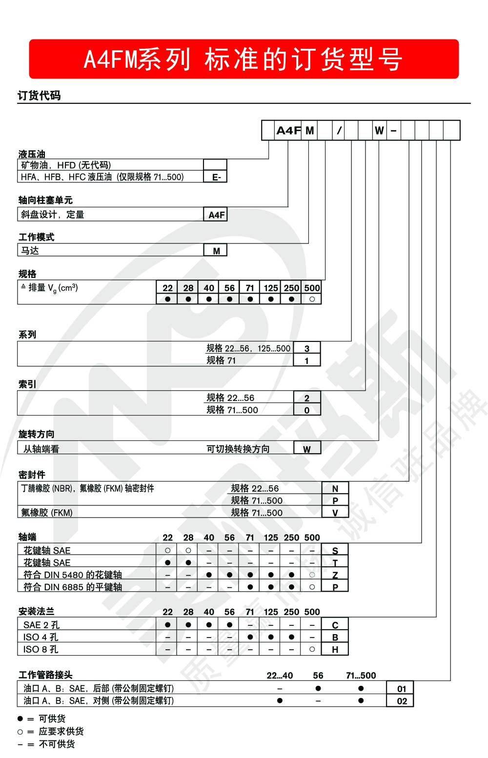 - 規(guī)格125...500:可選,垂直安裝位置,建議通過油口U 進(jìn)行軸承沖洗