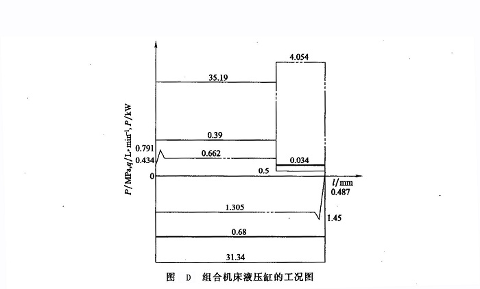 根據(jù)上述D與d的值,可以估算液壓缸在不同工作階段的壓力、流量和功率(見下表),并據(jù)此繪出如圖D所示的液壓缸工況圖,其中粗實線、細(xì)實線和雙點畫線分別表示P、q、p。