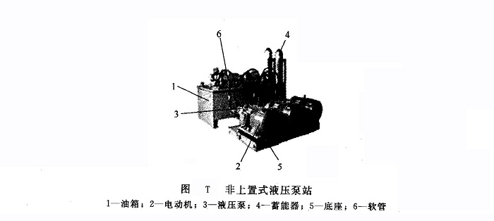 ④如安裝空間允許,則應(yīng)考慮采用非上置式液壓泵站,并將泵組與油箱分開(kāi)放置(圖T),以隔離泵組振動(dòng)對(duì)油箱的影響。