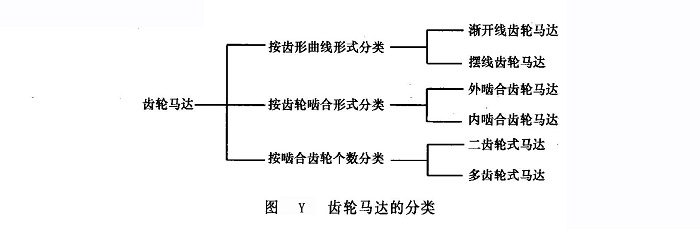 (l)分類 齒輪馬達(dá)是以嚙合原理工作的液壓馬達(dá),屬于高速液壓馬達(dá),它是各種液壓馬達(dá)中結(jié)構(gòu)最簡單的一種,其詳細(xì)分類如圖Y所示。其中,二齒輪式漸開線外嚙合齒輪馬達(dá)應(yīng)用最普遍。