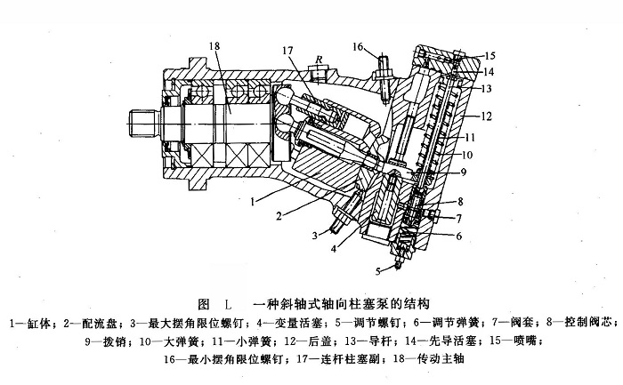 ③缸體斜軸泵的傳動(dòng)主軸不穿過缸體,其缸體直徑較直軸泵小,加上側(cè)向力對(duì)缸體的傾翻作用小,故配流副的工況比直軸泵好些,許用轉(zhuǎn)速也高一些。