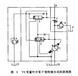 AZ560型注塑機(jī)由兩個獨(dú)立工作的注塑機(jī)和一個搭載16套模具的旋轉(zhuǎn)工作臺組成。一臺注塑機(jī)注鞋面,另一臺注塑機(jī)注鞋底。旋轉(zhuǎn)工作臺每旋轉(zhuǎn)一周就生產(chǎn)出16雙仿皮靴。注塑機(jī)的液壓泵采用力士樂V4變量雙聯(lián)葉片泵,其中一個為F型控制方式,另一個為C型控制方式。F型控制方式能進(jìn)行流量、壓力復(fù)合控制,C型控制方式是帶手動壓力調(diào)節(jié)的恒壓控制。